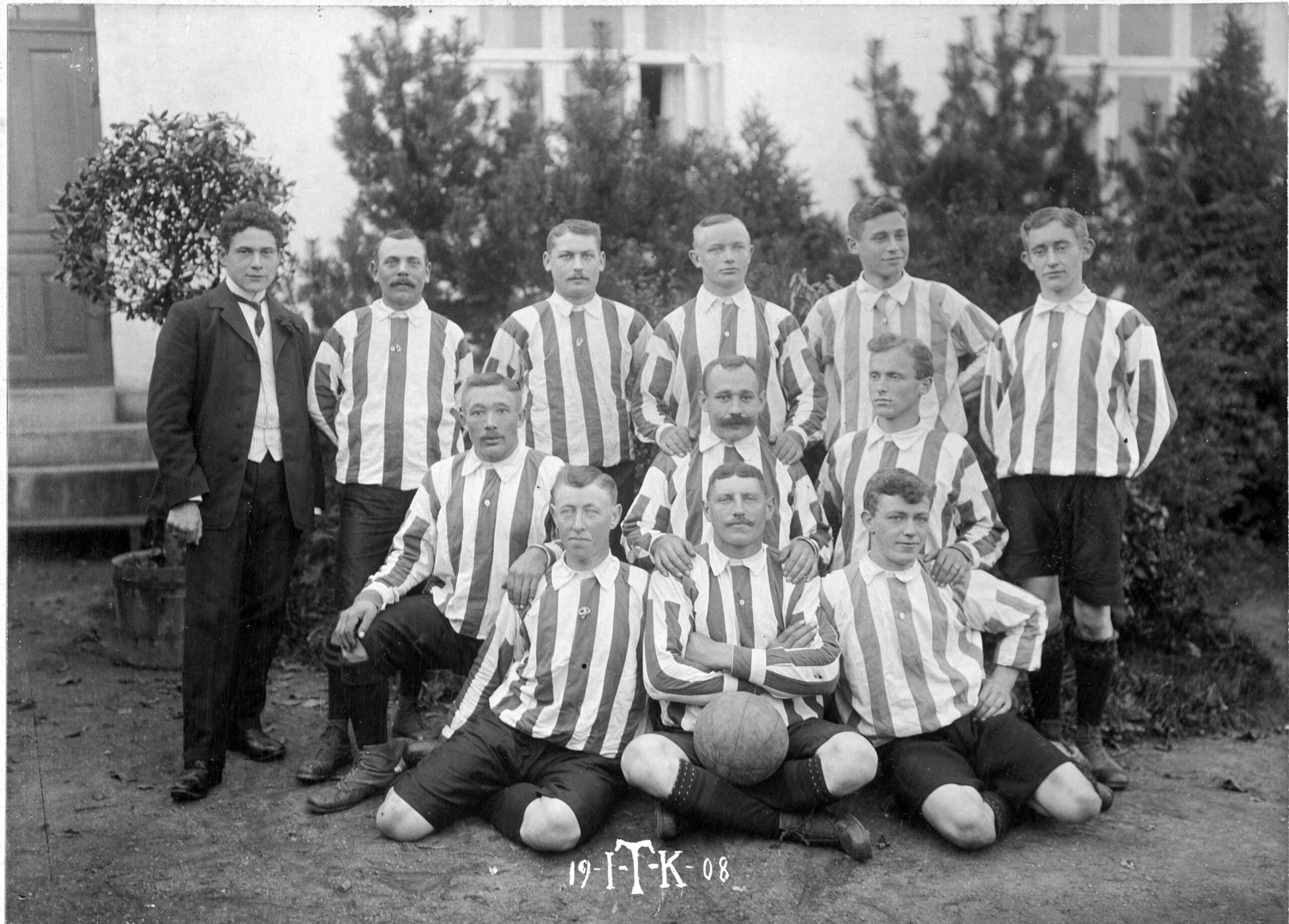 Vi har kaffe og te på kanden og lidt til børnene. I må meget gerne komme forbi med historisk oplysninger og andet. Derudover tager vi altid imod fotos og dokumenter fra alle tider. Årets landsdækkende tema er fritidsliv. Vi har ikke lavet et særskilt tema på dagen, men i arkivet findes masser af fotos og kilder om emnet. Bl.a. dette herlige foto fra TIK fodbold fra 1908.