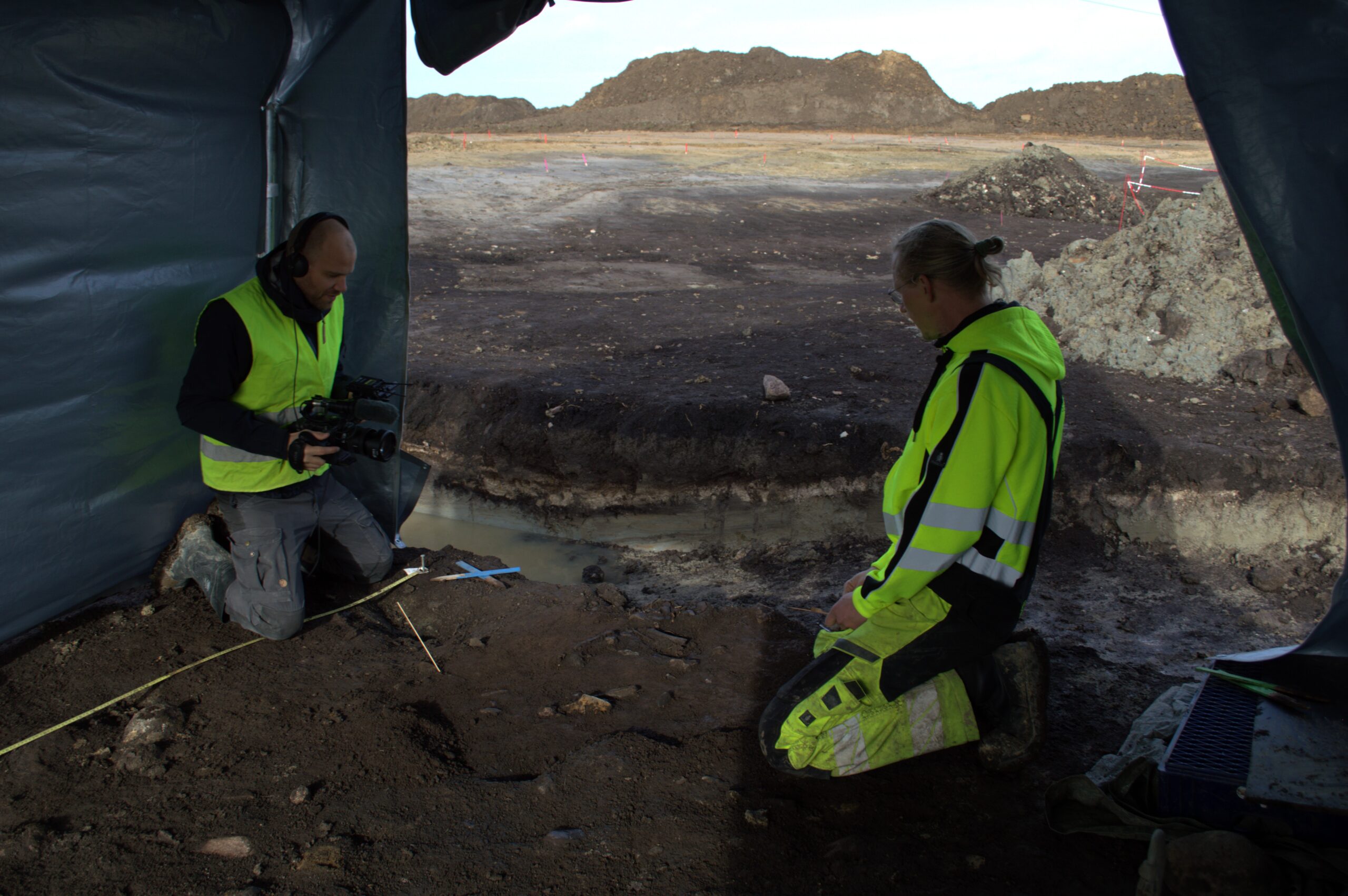 I forbindelse med den aktuelle udgravning har TV2 Kosmopol foretaget et interview med finderen, arkæolog, Daniel Teilmann, på stedet. Foto: Kroppedal Museum